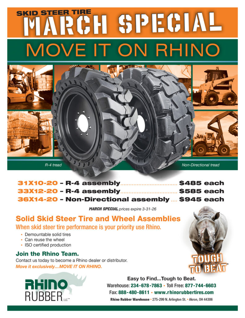 Rhino Rubber, LLC is a national distribution company that provides quality industrial tire products and services. We are looking for dealers and distributors to be a part of the Rhino team that represents “Excellence in Service” with a commitment to the principles of continuous improvement, quality and competitive products. Our team will take the “pain” out of the supply chain process.